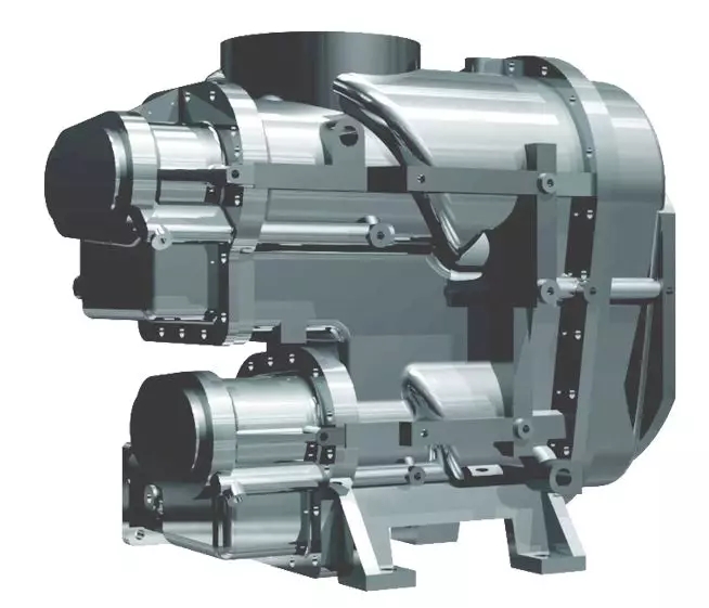 - 雙電機(jī)獨(dú)立驅(qū)動(dòng),每級壓縮比相比單級壓縮降低,轉(zhuǎn)子間泄漏回流大大降低,產(chǎn)氣量增加;
